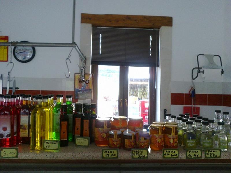 Στο κατάστημα μας λειτουργεί και κρεοπωλειο με προϊόντα ίδιας εκτροφής & παραγωγής. Στον ίδιο χώρο έχουμε φροντίσει να έχουμε παραδοσιακά προϊόντα όπως λάδι, γλυκά του κουταλιού, παξιμάδια, λικέρ και οινοπνευματώδη ποτά με ρακί, μέλι κ.α.